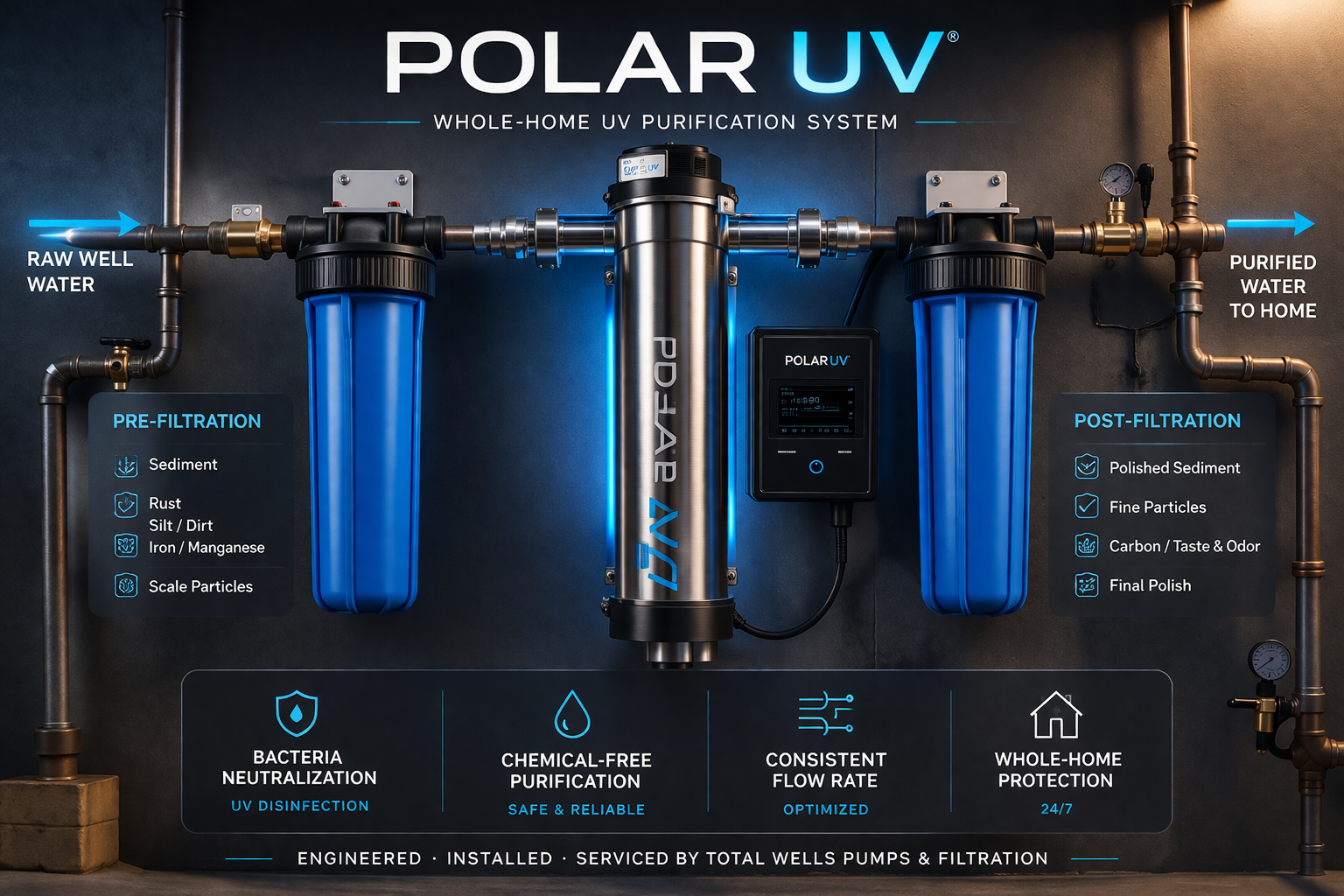 Polar UV Systems offer versatile applications for reliable and effective water disinfection in Snohomish and King County. With their advanced features and cutting-edge technology, these systems are designed to meet the highest standards of performance and provide peace of mind for residential, commercial, and industrial settings. When it comes to ensuring clean and safe water, Total Wells Pumps and Filtration is your trusted source.